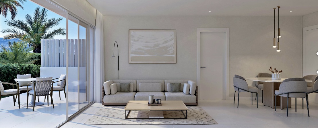 Sevilla is an exclusive residential ensemble featuring 16 apartments with 2 and 3 bedrooms, situated between the golf course and the beach of Oliva Nova.
