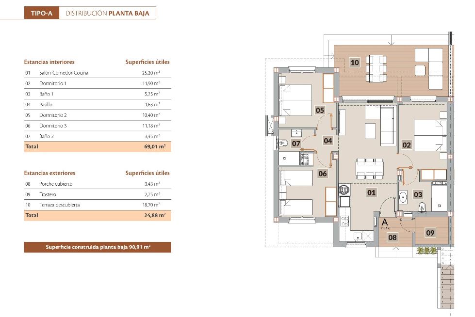 6. Apartment 110 m², 3 bedrooms, ground floor, terrace