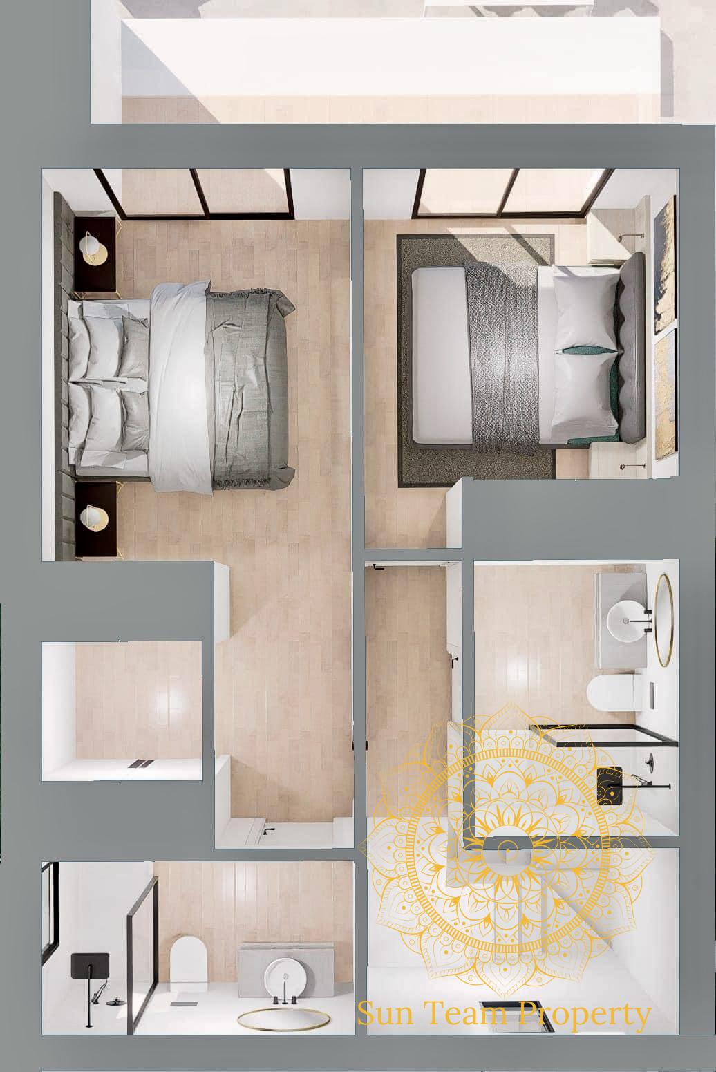 - Dwie sypialnie i dwie łazienki, w tym jedna z łazienką en-suite, zapewniające prywatność i komfort każdemu członkowi rodziny.