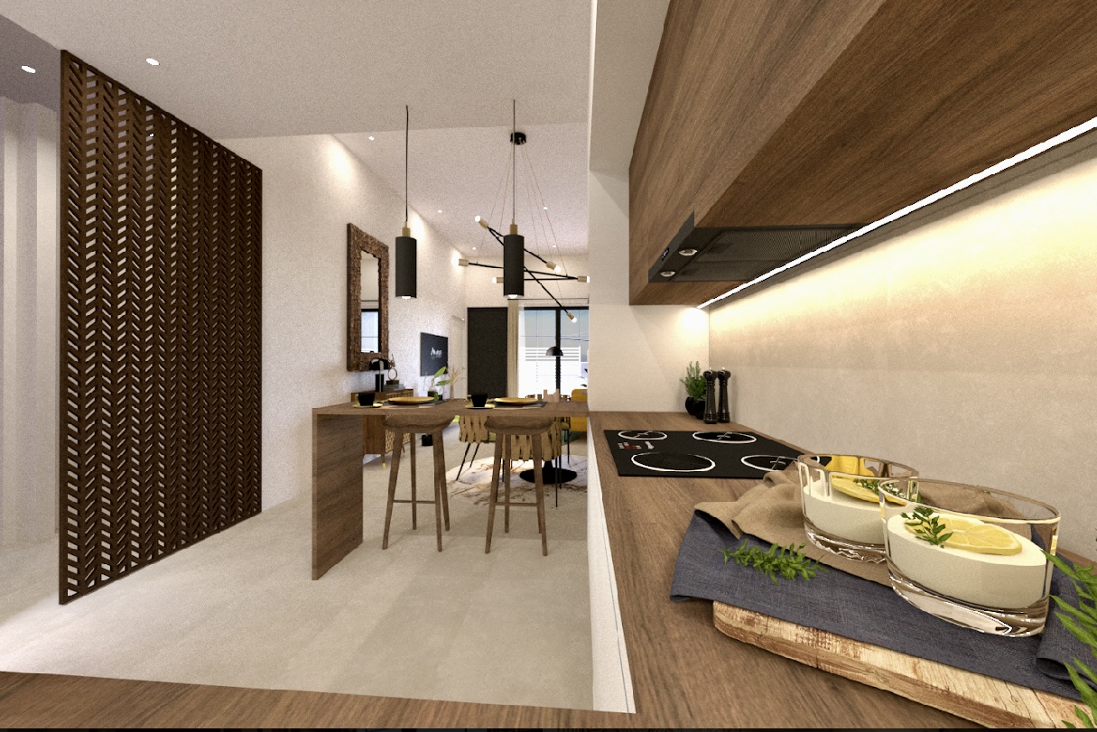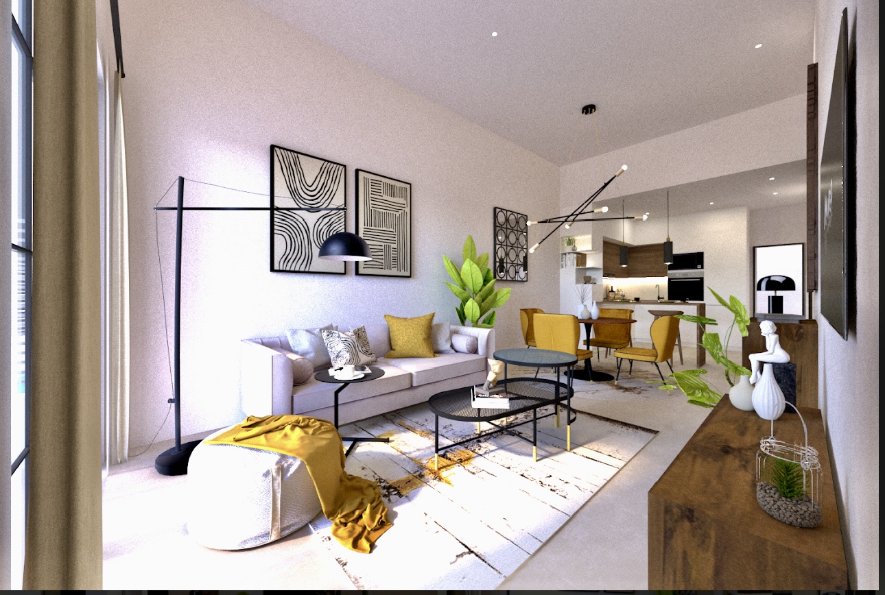 Each villa offers 3 spacious bedrooms and 2 modern bathrooms, including an en-suite in the master bedroom. The open-plan living and dining area features a stylish kitchen with a breakfast bar, complemented by high ceilings that enhance the feeling of space and light.