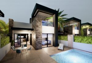 Additionally, there is an option to include a private swimming pool at an extra cost, as well as the possibility of having your villa fully furnished to suit your taste and needs. For more details, feel free to contact us directly for a personalized consultation.