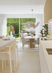 - Open-plan living room, dining area, and kitchen