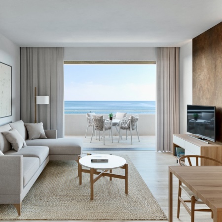 Discover modern beachfront apartments in Moncófar, Costa del Azahar, with panoramic Mediterranean views. Fully furnished, 2–3 bedrooms, pool, garage. From €194,000. Ready summer 2026.