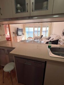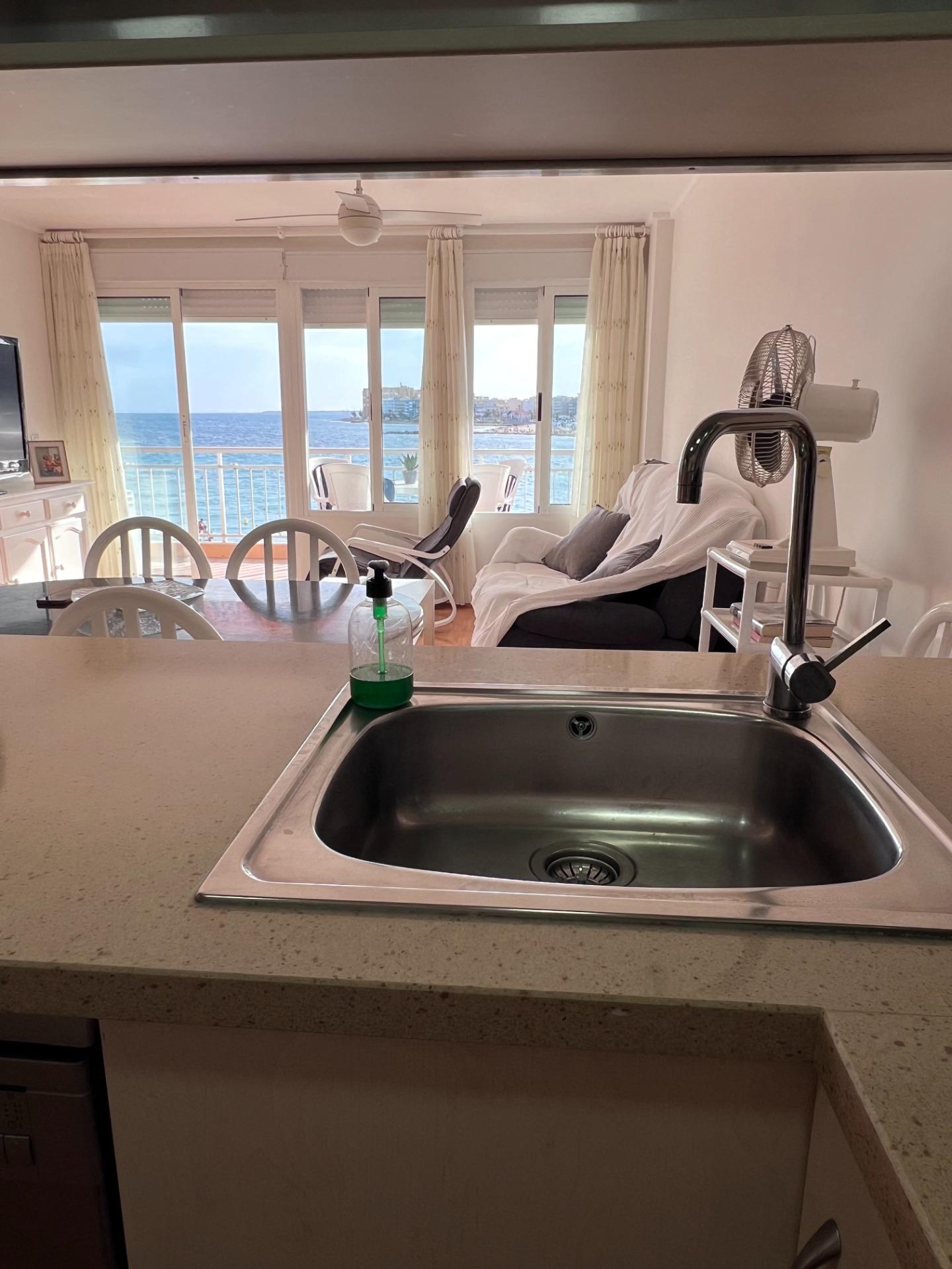 Seafront apartment with direct sea and beach views This apartment is a true Mediterranean gem for those who dream of waking up to the sound of the waves and enjoying the sea right from their home. A spacious terrace offers stunning views, while inside, the fully renovated interior creates a bright and welcoming space, ready to move into. Features: Total area: 86 m² 3 bedrooms (master with en-suite bathroom) 2 bathrooms Separate fully equipped kitchen Living room and bedroom with full wall windows overlooking the sea Utility room combining storage and laundry Large terrace with retractable awning Electric shutters 2nd floor Building details: Built in 1981, the apartment has been completely renovated Showers available at the entrance from the beach for residents Location: First line, with the beach just outside your door. All amenities within walking distance: supermarkets, restaurants, pharmacy, promenade, parks. This is more than an apartment — it’s a lifestyle, where every day begins with the sun and the sea. Perfect for permanent living, family holidays, or as an investment with excellent rental potential. Contact us today for more information or to arrange a viewing. We speak your language and will help you make your dream of living by the sea come true!