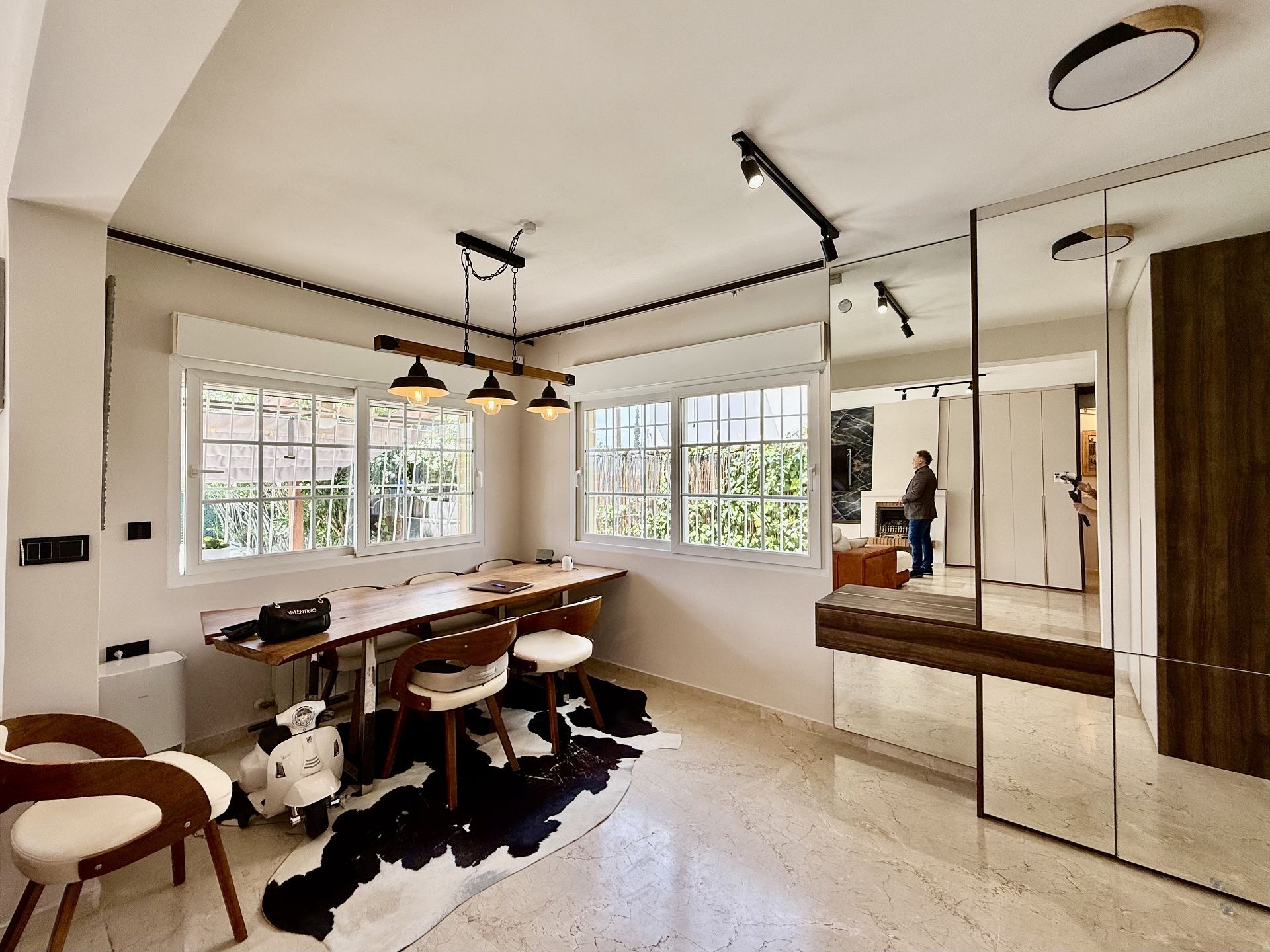 Beautiful Golf Villa surrounded by serene nature!. Visit this beautiful villa surrounded by serene nature. This fully renovated family home offers the perfect balance of modern comfort and ultimate privacy, ensuring you can enjoy your space peacefully. With two floors of thoughtfully designed living space, this property is the perfect sanctuary for those seeking peace and luxury.As you enter the villa, you’re greeted by a cosy living and dining area seamlessly flowing into an open-plan kitchen. Large windows frame the view of the sparkling swimming pool, creating a bright and airy atmosphere. The ground floor also features two well-appointed bedrooms, a sleek, modern bathroom, and a practical laundry room, providing convenience and functionality with plenty of storage space.Upstairs, you’ll find two additional spacious bedrooms with plenty of natural light and built-in storage. The highlight of this floor is the luxurious bathroom, designed with high-end finishes to create a spa-like retreat. From the top floor, step out onto the private terrace, where you can enjoy breathtaking views of the sea and the golf course, perfect for relaxing or entertaining guests.The villa’s garden has been designed for ease of maintenance, offering plenty of space to park vehicles and enjoy outdoor living. The large swimming pool is a standout feature, with a glass separation that enhances the connection between the pool area and the adjacent BBQ and chill-out zone. Whether hosting a gathering or enjoying a quiet day by the pool, this outdoor space is ideal for unwinding and taking in the peaceful surroundings.With privacy, luxury, and stunning sea views, this villa offers a truly exceptional living experience. It is perfect for those who value tranquillity, style, and a connection with nature.