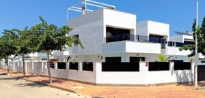 Step into contemporary comfort with this stylish, south-facing detached villa, built in 2024 and presented in as-new condition. Located in the heart of San Pedro del Pinatar, this two-bedroom, two-bathroom home stands out with high-end finishes and thoughtful extras throughout.