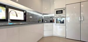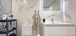 The villa boasts a bright and extended living room with direct access to the sun-drenched outdoor areas. A private balcony and a spacious roof terrace with a fully equipped outdoor kitchen, lighting, and a sleek pergola offer the perfect setting for entertaining or relaxing in the Spanish sun.
