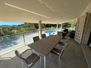 This luxury detached villa is frontline with stunning views over the North Course in La Manga Club. The property has private gates with video entry with a driveway leading down to the villa. There is a large garage with access to the house and ample parking space. The main entrance leads into the large, bright living/dining area which has windows on all three sides and glass doors leading out to the sun terrace and swimming pool area. The fully fitted kitchen has an island and american fridge freezer. There is also a pantry and laundry room. The villa has six bedrooms and five bathrooms spread around the house. The property is being sold fully furnished.