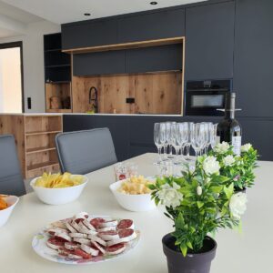 Upon entering, you immediately discover the flat's beautiful design. It comprises a living and dining room with an adjoining fully equipped open-plan kitchen, with direct access to the terrace where you can enjoy snacks and drinks in the Spanish open air.