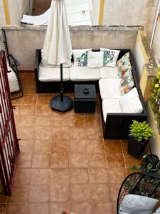 Property OverviewDiscover this sun-drenched triplex home located in one of the most peaceful gated communities of Orihuela Costa — Amapolas VI. This corner-style property spans three levels, offering generous interior space and a total of three private terraces, including a rooftop solarium with open views.Recently enhanced with stylish decor and modern touches, this home is sold fully furnished and ready to move in, making it a rare opportunity for families, remote workers, or investors seeking spacious living in a secure, well-maintained urbanisation. Real DimensionsWhile the property’s original registry documents reflect a smaller built area, a full internal and external measurement confirms an approximate usable interior space of 107 m², plus around 65 m² of private outdoor terraces spread across all three levels. This makes it significantly larger than similar homes in the area — offering true value and comfort. Features Main Floor: Open-plan living/dining with natural light and access to a cozy garden terrace, full bathroom, and kitchen First Floor: Two double bedrooms with fitted wardrobes, a full bathroom, and a second private terrace Top Floor: Bright multi-use attic bedroom with direct access to the rooftop solarium Air Conditioning in key areas Built-in storage spaces across all floors Secure community pool with locked access Ample street parking both inside and outside the urbanisation Location HighlightsSet within a quiet residential enclave with excellent access to schools, restaurants, beaches, and shopping, this home offers everything you need — whether as a holiday retreat, permanent residence, or high-yield investment. Annual Costs & Efficiency Community Fees: €360/year IBI (Council Tax): €280/year Energy Certificate: Class E (193 kWh/m²/year; 35 CO₂) Year Built: 2004 SummaryA rare find: 3 true bedrooms, 3 exterior terraces, and a spacious layout across 3 levels, all within a secure and family-friendly community. Add to that more than 170 m² total indoor + outdoor space — and you have a property that offers exceptional value and lifestyle. Asking Price: €189,000 Contact us now to schedule your private viewing.