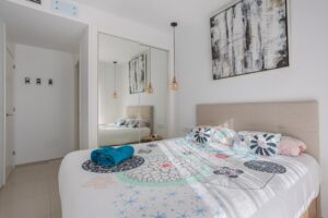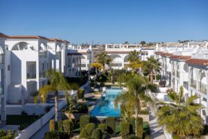 Located in a stunning setting along one of the most beautiful coasts of Spain – the Costa Blanca South – in the picturesque town of Rojales/Quesada. Just a short distance from the seaside resort of Torrevieja and close to the charming Guardamar del Segura with its famous sandy beaches.The accessibility of Penthouse ‘Allegra’ is nothing short of excellent. Two airports are at your disposal: Alicante-Elche Airport and Murcia-Corvera Airport, located just 30 minutes and one hour away, respectively.Penthouse ‘Allegra’ is, of course, fully equipped and features a modern interior design that meets today's standards. It is truly fitted with every comfort and offers a particularly pleasant and welcoming ambiance where you will immediately feel at home.The penthouse features, among other things:Two spacious, fully furnished bedroomsTwo modern bathroomsA fully equipped kitchenA large living room with very comfortable furnitureTwo terraces, including a balcony with a table and four chairs, and an exceptionally large rooftop terrace of no less than 78 m², offering stunning views of the lagoon and the beautifully landscaped garden with three large communal swimming poolsA children's playground, fitness facilities, and free tennis courts nearbyThe generous and comfortable rooftop terrace includes:A spacious dining table with six chairs under a retractable awningA cozy lounge set, sun loungers, a complete outdoor kitchen with a barbecue, refrigerator, and sink, as well as an outdoor shower with hot and cold waterAdditionally, the penthouse offers secure outdoor parking with three electric gates and a private parking space.