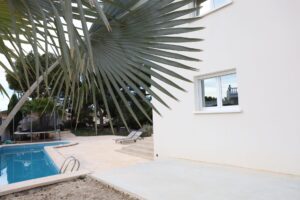 Chalet with pool and 5 bedrooms in Ciudad Quesada (Rojales) Spacious and bright chalet, whose major renovation began in 2020 and was completed in 2024 (Final de obra document available). Located in the prestigious Ciudad Quesada urbanization in Rojales. The property sits on a large plot of approx. 1,100 m² (800 m² recorded in title). Main level: – 5 bedrooms, including the spacious master with walk-in closet and en‑suite bathroom; – 3 bathrooms and 1 guest toilet; – Bright living room with fireplace; – Fully equipped open-plan kitchen. Semi-basement level: – Large room, storage, guest toilet and kitchen hookups — ideal for guest apartments with separate entrance; – Currently used as a massage and hair salon with independent access. Outdoor area: – Private pool, terrace area needs updating; – Rooftop solarium; – Plot offers space for garden, relaxation area and car shelter; – Gate access and possibility to park right next to the house. The house is in excellent condition and offers many possibilities to adapt the space. Location: – Just 6 km from the beach; – Quiet green area with local amenities: shops, cafés, park and lagoon nearby. KEY ADVANTAGES: – Renovation completed in 2024 – Spacious bright home with 5 bedrooms – Master bedroom with closet and en-suite bathroom – Potential for separate guest apartments – Private pool and solarium – Parking next to house, possibility for carport – Quiet area with nature and urbanization – New air conditioning units in all rooms An excellent choice for family living, vacation or investment — combining space, quality and location. Contact us for more information or to book a viewing — multilingual service available.