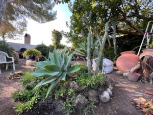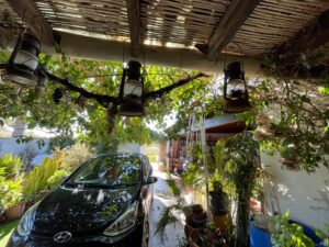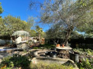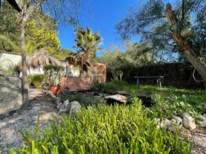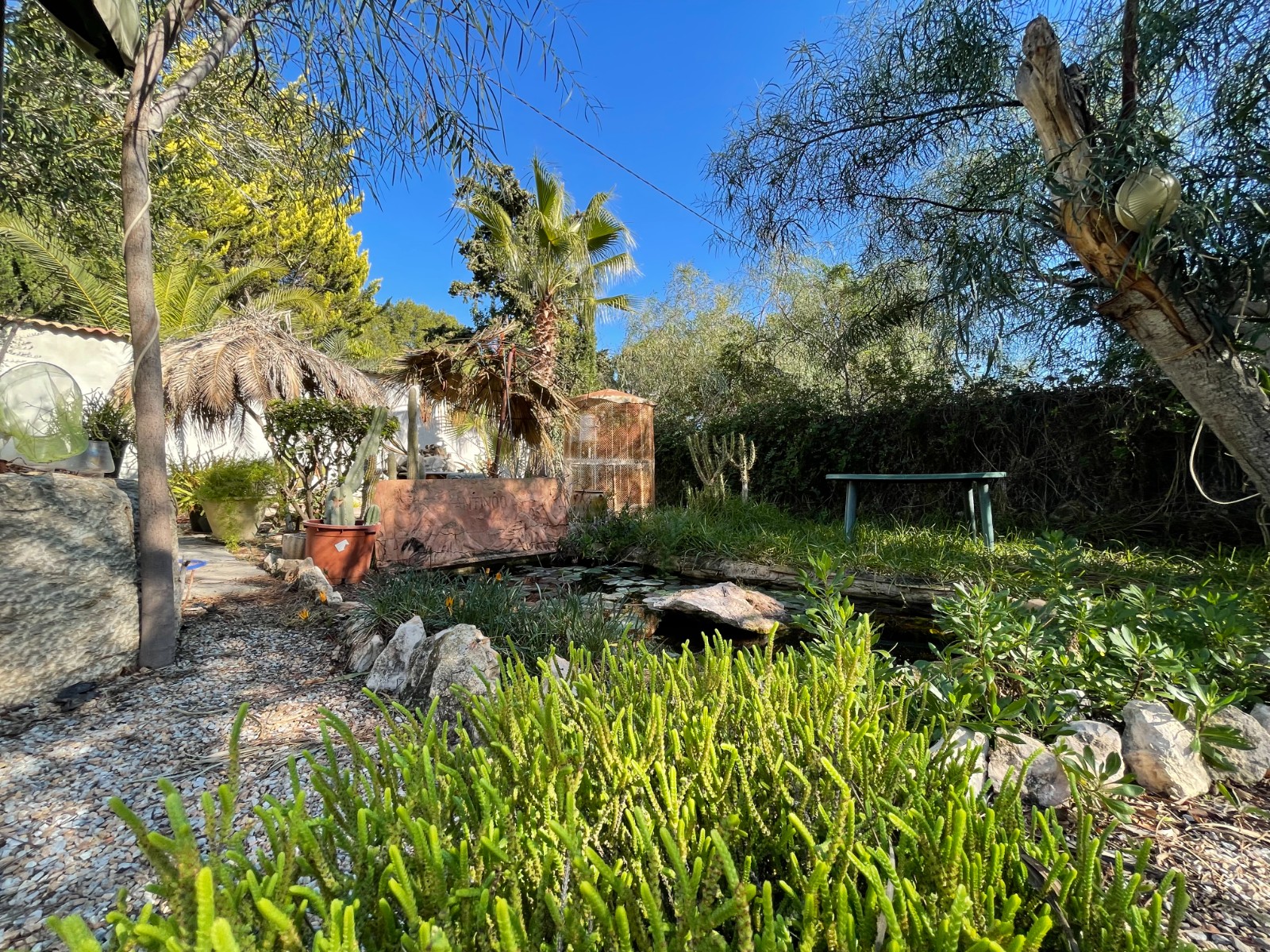 It is an independent house with 1250 m2 of land full of gardens, several mature trees, a stone barbecue and a small lake with water lilies.The house has 5 bedrooms and 2 bathrooms.Mosquito nets on the windows, gas stove, electric heating, centralized a/c. The house has good water pressure.It has a semi open garage, semi covered terrace, a small shed. There are two driveways - one manual, one automatic. Video intercom.Baker passes through the door every day!