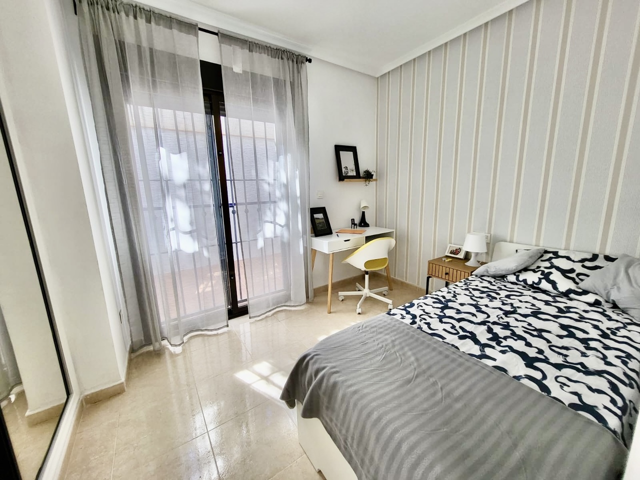 Elegant, fully renovated townhouse offering 3 spacious bedrooms and 3 modern bathrooms. The property features a generous, contemporary kitchen equipped with brand-new appliances, along with all-new, high-quality furnishings — all included in the sale price. The bright and open-plan living and dining area creates an inviting atmosphere, while each bedroom is fitted with built-in wardrobes for optimal storage.The villa sits on a plot of approximately 100 m² with a private garden, and residents can enjoy access to a communal swimming pool and landscaped green areas. Additionally, there is the option to purchase an underground parking space and a storage room of around 12 m².