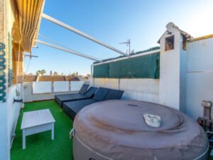 This is truly a stunning town house,the residence is located in Aguas Nuevas with an impeccable view.The home has 3 bedrooms , 2 full bathrooms , independent kitchen , solarium and a large garden . The property has been renovated.The accommodation is sold fully equipped and partialy furnished.Located close to all amenities such as restaurants, supermarkets, commercial centers, shopping center TorreMarina center is only 550 meters from the residence and the weekly market of Torrevieja, also not far from the residenceClose to La Mata beach and the beach of Los Locos.The area is well known for its large and beautiful green zones.There are several bus stops in the area, which bring you to the center of Torrevieja or to La Mata beach if you do not want to walk.Only 35 minutes by car to Alicante airport.ABOUT TORREVIEJATorrevieja is a city in the province of Alicante in the region of Comunidad Valenciana in Spain. The city is a popular tourist destination located about 40 minutes drive from the city of Alicante and the airport. Torrevieja was originally a small fishing village, and is today one of Europe's largest salt producers, Torrevieja has previously been called 'salt town', but in recent years the city has also been called 'sports town', due to the large sport arenas that have been built in recent years. As a result of this fantastic initiative, Torrevieja will be one of four organizational cities during the Women's Handball World Cup in 2021.When staying in Torrevieja, you are a short walk to white, elongated sandy beaches with a 'blue flag' stamp, as an indication of, among other things, high water quality. In the immediate vicinity and often 'right outside' the door you will find a large selection of local shops, restaurants, cafes, shopping malls, green parks, the port and the promenade. If you are looking for an area with life all year round and a healthy microclimate with 320 days of sunshine a year, this may be for you.This one should be experienced.€235,000 + taxesShared expenses: approx. 30€ per monthRubbish fee €21.36 x 2 times per yearTax: 276.77€ per year