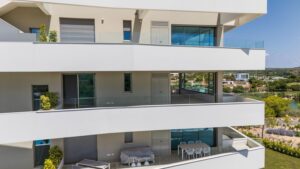 Ten nieskazitelny apartament z trzema sypialniami i dwiema łazienkami, nigdy wcześniej niezamieszkany i urządzony z wielką finezją, znajduje się w społeczności Madroño na terenie prestiżowego Las Colinas Golf & Country Club. Położony na wzniesieniu, oferuje spektakularne widoki na pole golfowe, okoliczne zielone wzgórza, a w pogodne dni na Morze Śródziemne. Główna sypialnia posiada łazienkę en suite, a pozostałe dwie sypialnie dzielą drugą, nowoczesną łazienkę. Salon łączy się z otwartą kuchnią z centralną wyspą, która obejmuje jadalnię, idealną do codziennego użytku i przyjmowania gości. Połączenie naturalnych odcieni, drewnianych paneli i zintegrowanego oświetlenia (w cokołach i wokół ram) nadaje całości ciepły i luksusowy charakter. Dwa duże tarasy powiększają przestrzeń mieszkalną na świeżym powietrzu, zapewniając prywatność podczas śniadań z widokiem lub po prostu relaksu. W cenie zawarte jest podziemne miejsce parkingowe i prywatna komórka lokatorska. Części wspólne oferują ogrody krajobrazowe, duży basen i nowoczesną siłownię. Las Colinas Golf & Country Club, położony w naturalnej enklawie o powierzchni 330 hektarów na południe od Alicante, to znacznie więcej niż tylko golf. Można tu korzystać z wykwintnych restauracji, szlaków turystycznych, obiektów sportowych, zajęć jogi, zakupów i ekskluzywnego Beach Club w Campoamor. To mieszkanie w Madroño reprezentuje nie tylko wysokiej jakości dom, ale styl życia pełen komfortu, spokoju i elegancji.