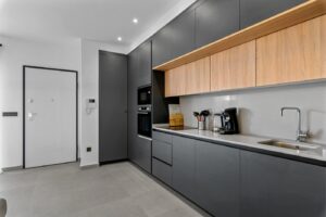 Upon entering through the front door, you step into the living room. The spacious living area with a modern kitchen is fully equipped with all necessities. At the rear of the house, you’ll find access to the first bedroom with an en-suite bathroom. Don’t miss the garden, complete with a private pool and several cozy seating areas to soak up the Spanish sun.