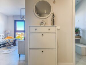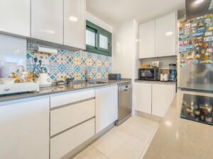 Prezentujemy nowoczesne mieszkanie w zamkniętym kompleksie z ogrodem i basenem, położone zaledwie 700 metrów od jednej z najlepszych plaż w Mil Palmeras, w prestiżowej dzielnicy Orihuela Costa. Ta bardzo ceniona lokalizacja mieszkaniowa pozwala cieszyć się klimatem śródziemnomorskim, spokojem i aktywnym oraz zdrowym stylem życia. Przestronne, jasne i bardzo przytulne mieszkanie posiada duży taras od strony południowej z widokiem na park i morze, idealny do relaksu i korzystania ze słonecznej pogody. Nowoczesny salon połączony jest z jadalnią i otwartą kuchnią, wyposażoną w nowoczesne meble i sprzęt AGD. Mieszkanie posiada 2 sypialnie z wbudowanymi szafami, 2 pełne łazienki oraz prywatną komórkę lokatorską, idealną do przechowywania rzeczy. W cenie znajduje się również prywatne miejsce parkingowe. To mieszkanie łączy plażę, komfort i wygodę: zaledwie 700 metrów do morza, w pobliżu supermarkety, restauracje i wszystkie usługi, a do centrum handlowego Zenia Boulevard tylko 10 minut samochodem. Wszystko w cichej i bezpiecznej okolicy, idealnej do komfortowego życia. Z ponad 300 dniami słońca w roku i łagodnym klimatem każdy dzień zachęca do spacerów nad morzem, aktywnego wypoczynku, sportów wodnych, golfa i życia towarzyskiego. Idealne dla rodzin, osób starszych lub każdego, kto szuka spokojnego i ekskluzywnego stylu życia nad morzem. Cena nieruchomości nie obejmuje kosztów notarialnych, rejestracji ani obowiązujących podatków, które różnią się w zależności od obowiązujących przepisów w Comunidad Valenciana.