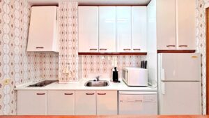 This cozy 4th-floor apartment with 1 bedroom and 1 bathroom is in its original condition but well maintained, ready to move into and enjoy. With a built area of approximately 50 m², it offers a bright atmosphere thanks to its orientation and its terrace with side sea views.The living-dining room is spacious and functional, with direct access to the terrace, an ideal place to relax outdoors while enjoying the Mediterranean breeze. The independent kitchen keeps its original design, well distributed and connected to the living area through a serving hatch, which adds comfort to daily life.The bedroom includes a built-in wardrobe and receives plenty of natural light, while the bathroom maintains its classic original style.Edificio Lyon, located in the sought-after area of Rocío del Mar, offers a community swimming pool and parking area, providing comfort and tranquility. The urbanization is surrounded by all necessary services: supermarkets, restaurants, public transport, and leisure facilities.Its location is excellent, just a few minutes’ walk from Rocío del Mar and Punta Prima beaches, making this apartment an ideal option as a permanent residence, holiday home, or rental investment.