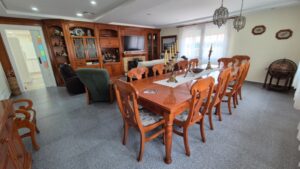 Nestled on a private street lined with exclusive mansions, this stunning property in Cabo Roig exudes the luxurious charm and sophistication of a Miami-style estate. The expansive garden offers a serene escape, featuring a small basketball court for active moments and plenty of space for relaxation or entertainment.A highlight of the property is the enclosed pool area, complete with a stylish meeting space designed for dining and gatherings. The area is sheltered by a roof yet remains open to the surrounding views, allowing for an al fresco dining experience that feels both intimate and expansive.Inside, the mansion boasts six generously sized bedrooms, each a peaceful retreat with ample space to accommodate a large, multi-generational family. The five beautifully designed bathrooms ensure comfort and privacy for every guest.The grand living room features rustic furniture that blends effortlessly with the home's modern architectural style, creating a warm and inviting atmosphere. The fully refurbished kitchen is a chef's dream, with brand-new, state-of-the-art appliances and spacious countertops that invite culinary creativity.This luxurious mansion offers the perfect balance of modern elegance and timeless comfort, making it the ultimate setting for family gatherings, entertaining, or simply unwinding in style.