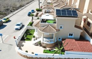 Are you looking for a detached villa in a quiet and safe area with incredible views of the sea and salt flats? We have just what you need! This corner house offers the utmost tranquility and security you seek, with continuous surveillance to ensure you always feel protected. Additionally, it features solar panels that cover daily daytime needs, including running the washer and dryer simultaneously. The house has been completely renovated and is in perfect condition. It has 4 bedrooms and 2 bathrooms, built-in wardrobes, a storage room, and spacious terraces with a barbecue, one on the ground floor and another on the upper floor. You can also enjoy the communal pool and private garage, although it's not necessary to park the car inside as there is always ample parking space in the area. The house is south and east facing, ensuring plenty of natural light in all rooms. It also has electric heating and cooling to keep you comfortable year-round. The house sits on a 215 m² plot with a built area of 163 m². Don't miss the opportunity to visit this townhouse in a privileged area with incredible views. You will fall in love with it!