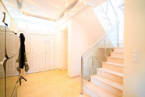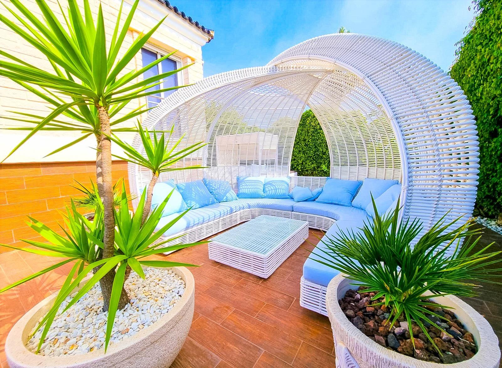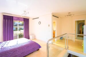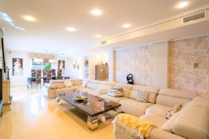 A spacious villa for sale with 5 bedrooms, two living rooms (one located in the semi-basement), four bathrooms, a sauna, dance room, and gym. The total built area is 367 m², distributed over three levels, on a 625 m² plot featuring a private pool and barbecue area The villa is located in one of the most prestigious areas of Torrevieja – Molino Blanco (La Mata). The distance to La Mata beach is just 250 meters in a straight line Sold fully furnished, with all household appliances, decorative elements, central air conditioning, and well-planned lighting