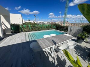 Unikalna Willa Wolnostojąca na Sprzedaż w La Finca Golf Resort Ta ekskluzywna willa została wybudowana na przestronnej działce o powierzchni 500 m² i oferuje jasne, otwarte przestrzenie mieszkalne łączące salon, kuchnię i jadalnię. Duże okna wpuszczają dużo naturalnego światła i otwierają się na imponujący, w kształcie litery L taras, zadbany ogród oraz prywatny basen. Taras jest częściowo osłonięty pergolą z elektrycznymi markizami, co czyni go idealnym miejscem do korzystania z przyjemnego klimatu śródziemnomorskiego przez cały rok. Obecni właściciele dostosowali willę do przestronnej dwupokojowej aranżacji, jednak przy niewielkich zmianach można ją łatwo przekształcić z powrotem w trzypokojowe mieszkanie. Nieruchomość może zostać zakupiona umeblowana lub bez mebli, według preferencji kupującego. Willa wyposażona jest w najwyższej klasy udogodnienia: klimatyzację strefową, ogrzewanie podłogowe w łazienkach, system alarmowy z kamerami wideo, pełną automatykę domową, elektryczne rolety, prywatny basen z zewnętrznym prysznicem, punkt ładowania samochodu elektrycznego, kilka elektrycznych markiz, prywatny parking z automatyczną bramą oraz zadbane ogrody z drzewami owocowymi i roślinami aromatycznymi. Kuchnia jest najwyższej klasy, w pełni wyposażona w najnowsze urządzenia premium marki Miele. Willa znajduje się w prestiżowym La Finca Golf Resort w Algorfie, w Vega Baja del Segura, oferując mieszkańcom szeroką gamę udogodnień: restauracje serwujące kuchnię krajową i międzynarodową, luksusowy pięciogwiazdkowy hotel z spa i siłownią, ekskluzywny klub oraz nagradzane 18-dołkowe pole golfowe La Finca. Dzięki wyjątkowej lokalizacji willa znajduje się blisko pięknych plaż Guardamar i Torrevieja, gdzie można cieszyć się ciepłą wodą i słońcem ponad 300 dni w roku. Lotnisko w Alicante znajduje się 40 minut jazdy samochodem, a lotnisko w Murcji – 55 minut.