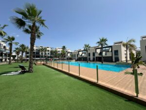OASIS BEACH XII - We are thrilled to present this incredible 3-bedroom apartment in the highly sought-after Oasis Beach XII residential complex. Boasting a south-facing aspect that is simply perfect, this 103-square-metre built, luxury partment is the ultimate fusion of modern elegance and relaxing comforts.You're going to love the stunning views of the lush garden and sparkling outdoor pool! And you can enjoy them from the comfort of your own home!This sanctuary of comfort and sophistication is simply stunning! It's equipped with air conditioning to keep you cool and fully furnished with high-end appliances. Inside, you'll find a kitchen, living room and dining room, as well as three bedrooms and two bathrooms, one of them en suite.The terrace, accessible from the living room and master bedroom, is the perfect place to relax in the sun or enjoy al fresco dining. You can open or close part of it according to your needs, making it a versatile and enjoyable space.You'll love the convenience of your very own private storage room and underground parking space! The entire complex is completely enclosed and accessed via an electronic entry system, offering residents greater peace of mind and convenient on-site parking. That's not all – you'll also have access to the best community facilities around, including an outdoor fitness area and a wellness centre with a sauna and jacuzzi.Built in 2019, this apartment is the epitome of excellence in design and quality. It offers an unparalleled lifestyle in one of the most sought-after destinations on the South Costa Blanca – a true gem.