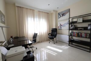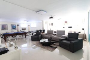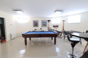 Ciudad Quesada Detached villa model Lucia Especial with a plot of 700 m2 in front of a park with a house on two floors plus basement with an area of 355 m2, with 5 bedrooms and 4 bathrooms, the house is structured in a basement with 145 m2 and has a Turkish bath (Haman), Sauna relaxation area, bathroom, bedroom, cinema area, billiards and table football, the ground floor has 145 m2 and has 2 bedrooms, bathroom, kitchen and large living room with fireplace, the upper floor with 65 m2 has 2 bedrooms, 2 bathrooms, 2 terraces with views of the sea and the lagoons, the house is sold furnished and has a large heated swimming pool, Jacuzzi and barbecue area with outdoor kitchen, also, driveway with pergola.