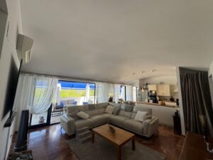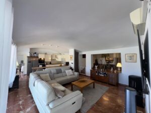 The spacious living area seamlessly flows out onto the terrace, effectively extending your living space and providing an ideal setting for relaxing or entertaining. Inside, you’ll find a well-appointed open-plan kitchen with ample worktop space, a raised dining area, and a welcoming ambiance throughout.
