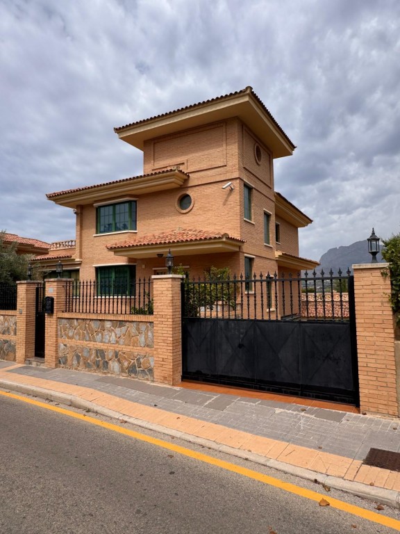 Spacious 8-Bed Villa with Panoramic Views and Private Pool in Benidorm. This spacious 480 m² villa is situated on a 568 m² plot in the desirable Rincón de Loix neighborhood of Benidorm. Spread across three floors plus a solarium, it offers plenty of space for family and guests. The property includes a lush garden, several terraces to enjoy the outdoors, and a private kidney-shaped pool.Inside, you'll find a welcoming entrance leading to an independent kitchen with a dining area and a covered terrace. On the same level, there's a living room, a bedroom, and a bathroom. Upstairs, four additional bedrooms, including one with an en-suite bathroom, all have access to a terrace. The third level features a panoramic solarium with stunning views.The basement offers an independent apartment with three bedrooms, a full bathroom, a living room, and a kitchen—ideal for guests or rental opportunities. There's also a large multipurpose room, a summer kitchen, and an extra bathroom.Additional features include double-glazed windows, air conditioning, a security door, a garage space, and a well-maintained garden. Located close to main roads, public transport, supermarkets, schools, and just 15 minutes from La Marina shopping center, this villa combines comfort, convenience, and beautiful surroundings.