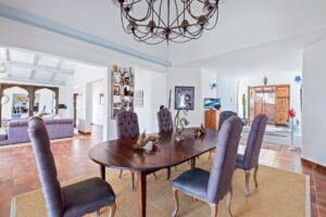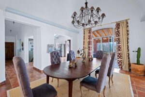 This spectacular villa is presented for sale, offering breathtaking panoramic views of the sea and the mountains, framed by an environment of pure nature. With a built area of 370 m² on a spacious plot of 19,900 m², the property ensures absolute privacy and a serene atmosphere, with paved access almost in its entirety (only 300 m of dirt road). The house is a former country estate (masía) completely rebuilt in 2007, preserving the charm of traditional stone-wall architecture while combining it with the comfort and design of a modern home. Its spacious, bright, and carefully decorated rooms convey freshness, elegance, and harmony. The villa is arranged over two levels, adapted to the natural slope of the land: Main floor: An elegant entrance hall welcomes you and leads to a large living-dining room, open to a designer kitchen with a central island. It features two en-suite bedrooms, one of them with a walk-in closet. All rooms have direct access to a spacious terrace with spectacular views. Ceramic floors and antique hydraulic tiles add character and authenticity. Lower floor: An independent area dedicated to the master bedroom, with a unique designer bathroom (stone sinks, hammam, automatic WC, and Italian bathtub), a luxury walk-in closet, private lounge, and an office —currently used as a music and recording studio— with its own bathroom. Large windows connect this level to the outdoors and its magnificent views. Solid oak flooring adds warmth and distinction. The outdoor spaces are designed to fully enjoy the climate and nature: large parking areas, several terraces, a heated private pool with open views, a chill-out area with a Bale for yoga or meditation, and a basketball court. Programmable outdoor lighting, automatic irrigation, and a large water tank complete the property’s comfort. The house is equipped with oil-fired underfloor heating, as well as two high-power air conditioning systems (hot/cold with anti-humidity function), ensuring comfort all year round. This villa is much more than a home: it is a retreat of peace, privacy, and natural beauty. Perfectly integrated into its surroundings, it is ideal both as a permanent residence and as an exclusive investment in one of the most privileged areas of the region.