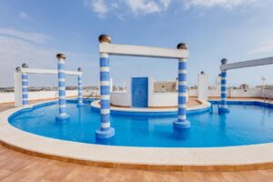 The residential complex has a fantastic communal swimming pool located on the rooftop solarium, an exclusive space where you can relax while enjoying the stunning panoramic views of the city and the Mediterranean Sea.
