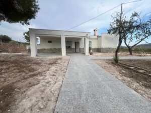 The brand new country house offers 145 m² of living space on a fully fenced 1,500 m² plot with mature olive trees. The property includes four bedrooms and two bathrooms, one of them in suite in the master bedroom. There is also a built-in wardrobe in the master bedroom for added convenience.The bright living room features a wood-burning stove, perfect for cozy winters. The kitchen is spacious and has direct access to the outdoor area, where you can enjoy lovely open views. The house also has an electric boiler.Access to the property is easy, and it is located just 5 minutes from the town of Pinoso, where you will find supermarkets, restaurants, schools, medical services, and everything else you might need for day-to-day living.About the Area:Pinoso is a popular inland town in the province of Alicante, known for its wine production, friendly community, and relaxed lifestyle. It offers a range of services while maintaining the charm and tranquillity of a traditional Spanish village. The surrounding countryside is ideal for outdoor activities like hiking, cycling, and enjoying nature.We have a large portfolio of properties in the Costa Blanca and Costa Calida areas, specialising in country properties, villas, fincas, building plots and design and build options in the Alicante and Murcia regions with a particular emphasis on Elda, Monovar, Pinoso, Sax, Villena, Aspe, Fortuna, Albacete and many more surrounding areas. We have been established since 2004 and have decades of experience between the team which we bring to bear to help you find and secure your new dream home. We help you every step of the way to make sure your purchase in Spain is safe and hassle free. We are not here to sell you a property, we are here to help you realise your dream and find what is right for you. With us you are in the safest hands. Contact us now to have a no obligation chat about how you too can realise your dreams.
