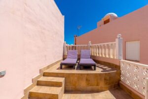 This unique townhouse is 164 m2. It is over 2 levels and has 5 bedrooms and 2 bathrooms and 1 toilet.There is a large living room with fireplace, a kitchen with dining area, laundry room, sauna and several storage rooms.The special thing about the property is that it has a private pool, several large terraces and outdoor areas as well as very good sun conditions.There is also a communal pool area in the urbanization.The home is sold furnished, with appliances and air conditioning.Contact us for more information and a viewing.Price: 399,000 euros + costsFacts:Area: 164 m25 bedrooms3 bathroomsFurnishedWhite goodsCommunal poolPrivate poolSaunaLaundry roomStorage room2 floorsAir conditioningYear of construction: 1986Property tax: 301 euros per yearCommunal costs: 425 euros per yearEnergy certificate: E