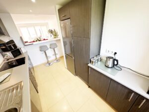 Features: Allocated underground parking with aluminium lock upBeautifully presented immaculate propertyEast facing three bed two bath overlooking poolEnsuite bathroom remodelled with walk in showerLarge main terrace and a further private terrace off guest bedroomNew Hob and Oven fittedNew shower in guest bathroomNew water heated installed February 2025Sold furnished with new aircon throughout