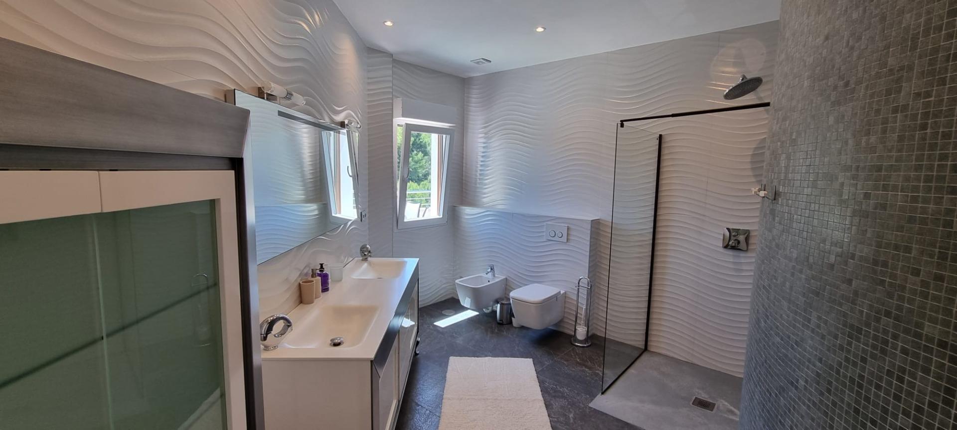 Two luxurious villas on the front line of golf, 6 km from the city center of Altea. One villa is completely finished and furnished, the other is under construction (approximately 70% completed). The plot has an area of 2,400 square meters, the first villa has 490 square meters (finished), the second villa has 490 square meters (under construction). The finished villa has 7 bedrooms and 5 bathrooms. The distance to the sea and the city is 3 km. The villas are equipped with a barbecue and have parking for several cars. The villa under construction is 800 square meters, the finished villa is 1600 square meters, with the possibility of customizing the interior according to your preferences.