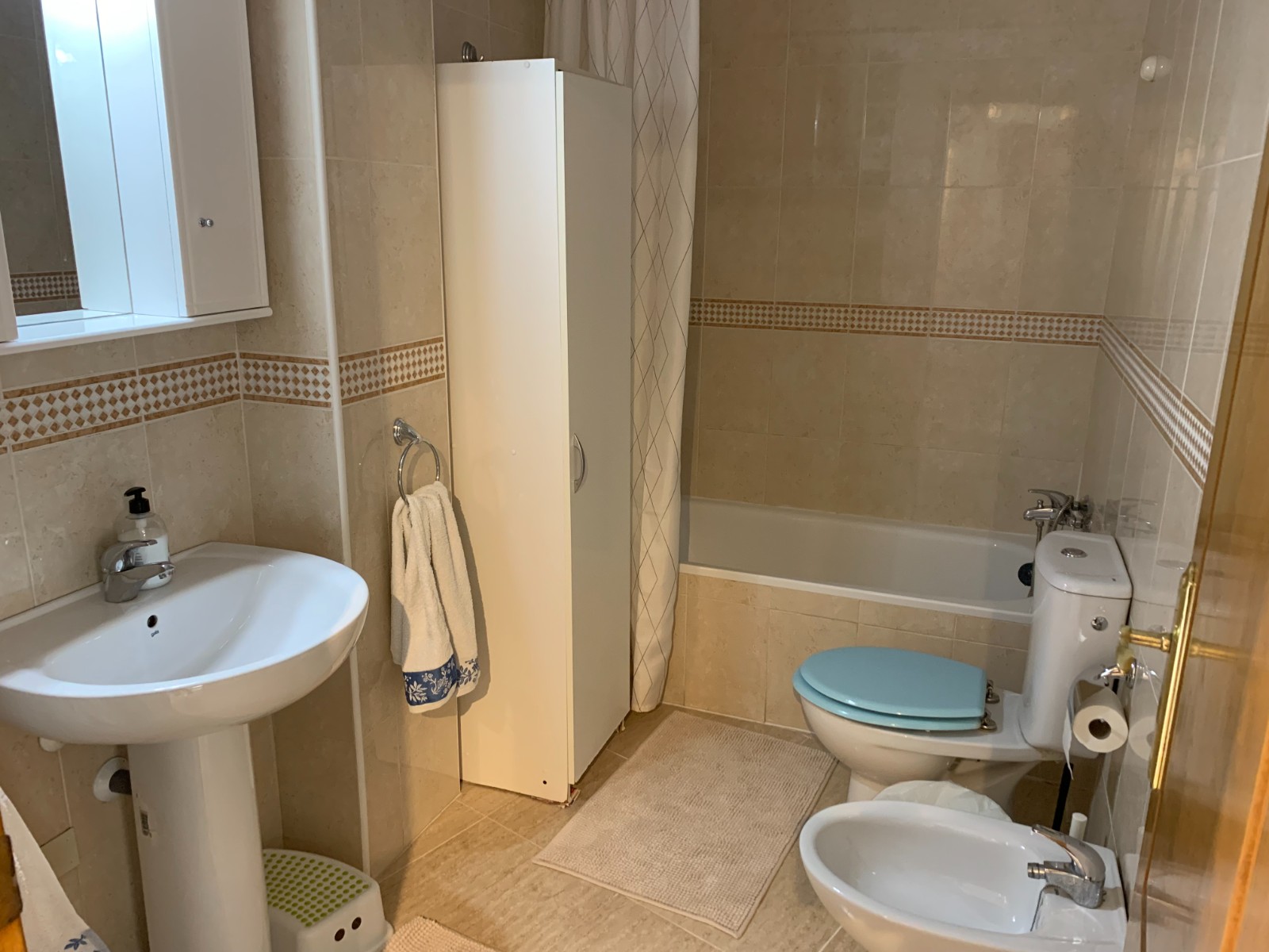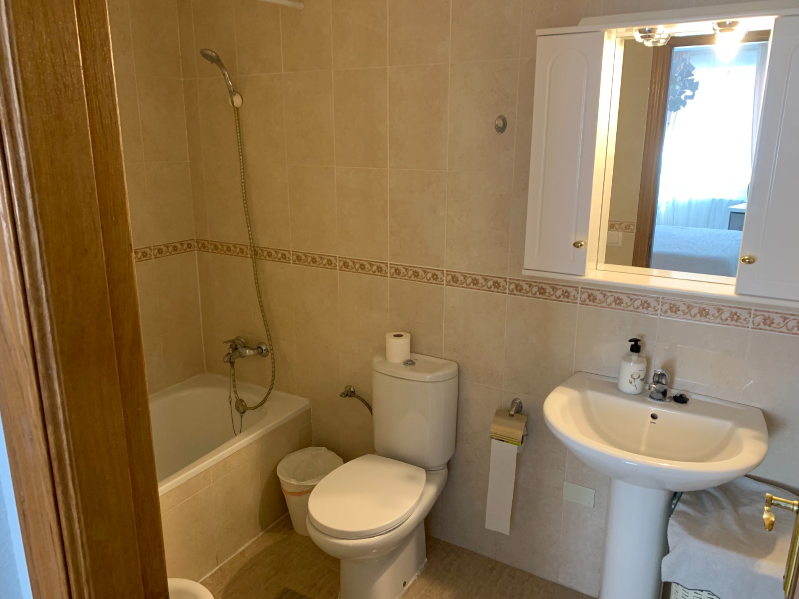For sale apartment of three bedrooms and two bathrooms. Very sunny and cozy, good condition. It is delivered with everything that completely furnished, independent kitchen, equipped with appliances. Installed air conditioning (hot/cold), heating radiators. A spacious living room with access to the terrace. All bedrooms have large size.Double bedroom has its own bathroom, built-in wardrobe and an office-corner creating a comfortable area to work from home.Building well maintained, has several elevators, common areas in very good condition, well maintained by the community of neighbors.Located in a central area, with all services next door. Beach about 900 m. It is a recommended house to live both on holidays and throughout the year.