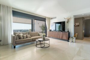 Step into a world of refined elegance, where sleek modern lines and high-quality finishes define every corner. Large windows flood the open-plan spaces with natural light, creating a warm and inviting atmosphere throughout the penthouse.Three Spacious Bedrooms