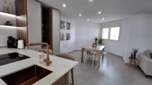Apartament z 2 sypialniami i 2 łazienkami, w pełni po generalnym remoncie, położony zaledwie 50 metrów od plaży Acequión w Torrevieja. Nieruchomość została wykończona przy użyciu wysokiej jakości materiałów i wyróżnia się nowoczesnym designem, eleganckimi płytkami oraz dopracowaną aranżacją wnętrza, która tworzy komfortową i funkcjonalną przestrzeń do życia. Salon połączony jest z otwartą, nowoczesną kuchnią z wyspą, w pełni wyposażoną w sprzęty AGD. Apartament sprzedawany jest w pełni umeblowany i wyposażony – gotowy do zamieszkania. Do dyspozycji jest klimatyzacja kanałowa, sprzęty AGD, telewizor oraz wideodomofon, co zapewnia wygodę i bezpieczeństwo. Dużym atutem nieruchomości są przyjemne widoki na zielony park, które zapewniają spokój i wyjątkowy klimat. Lokalizacja pozwala na dojście do piaszczystej plaży w zaledwie kilku kroków, co czyni tę ofertę idealną zarówno do zamieszkania na stałe, jako drugi dom, jak i inwestycję pod wynajem. To doskonała okazja dla osób poszukujących wysokiej jakości, świetnej lokalizacji w Torrevieja.
