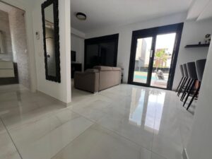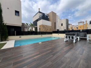 MODERN CHALET IN LOMAS DE CABO ROIG – A GEM ON THE COAST We present an exclusive property located in one of the most sought-after residential areas on the Orihuela Costa: Lomas de Cabo Roig. This development is distinguished by its high level of maintenance, well-maintained surroundings, and exclusive residential atmosphere. If you're looking for a home that combines style, comfort, and sustainability, this villa is exactly what you need. 201 m² Plot | ️ 193 m² Built | 111 m² Living Area Modern and Functional Architecture From first glance, this villa stands out for its contemporary design, clean lines, and quality materials. Each space has been designed to offer light, spaciousness, and comfort. Private parking in front of the house Forget about looking for parking: you'll have your own space right in front of the house, with direct access. ♀️ Private pool and garden Enjoy the Mediterranean climate year-round in your own pool, surrounded by a garden area ideal for sunbathing, barbecues, or simply relaxing. ️ Open-plan kitchen with spacious living room A modern, open space that connects the kitchen with the living-dining room, perfect for gatherings with family or friends. Separate laundry room, ideal for keeping the house tidy. ️ Smart layout over 3 floors: ➡️ First floor: 1 versatile bedroom (ideal for guests or an office) 1 full bathroom ➡️ Second floor: 2 master bedrooms with en-suite bathrooms, both with direct access to a private terrace where you can relax with open views. ➡️ Third floor: Private solarium with solar panel installation already installed (only the batteries are missing). An ideal space to create a chill-out area, install an outdoor kitchen, or simply enjoy the views and the sun. Efficiency and sustainability: This home is not only modern in design but also energy-conscious, prepared to incorporate solar energy and reduce costs in the long term. Prime location: Minutes from the beaches of Cabo Roig, shopping centers like Zenia Boulevard, golf courses, supermarkets, restaurants, and all the services necessary for a comfortable and quality life. A property designed for those who value design, comfort, and a sustainable future. Ready to enjoy from day one. Contact me for more details, photos, or to arrange a viewing. This villa will not leave you indifferent!