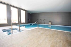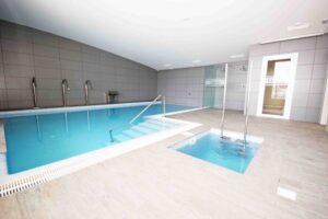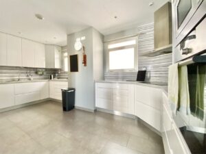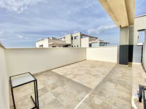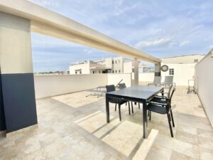 Penthouse with 4 bedrooms and 3 bathrooms.This beautiful apartment has lots of space both inside and out.A large living room has plenty of space for both a lounge and a dining area. Large kitchen with good cupboard space and table space.Furniture and white goods are included. There are several new beds in the apartment.Large south-facing balcony with access from both the living room and bedroom.Large roof terrace with outdoor shower and storage. The roof terrace has a beautiful view of the town and the sea. Where you can enjoy the sun most of the day.The complex has both an outdoor and an indoor pool, and a fitness facility.