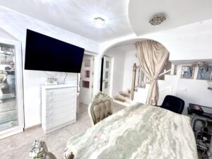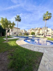 Idealna lokalizacja w pobliżu bulwaru La Zenia i plaż Orihuela Costa Prezentujemy ten przestronny dom szeregowy w Playa Flamenca, położony tuż przy popularnym sobotnim targu i zaledwie 600 metrów od centrum handlowego La Zenia Boulevard. Idealny dom, aby cieszyć się śródziemnomorskim klimatem przez cały rok, z przestronnymi pokojami, tarasami i prywatnymi terenami zewnętrznymi. Układ i główne cechy 3 główne sypialnie dwuosobowe 2 dodatkowe sypialnie lub przestrzenie wielofunkcyjne (idealne jako biuro, pokój zabaw lub dodatkowe sypialnie) 2 łazienki (jedna z prysznicem, druga z wanną) Oddzielna, w pełni wyposażona i odnowiona kuchnia Pralnia + dodatkowe pomieszczenie gospodarcze lub warsztat Przestronne przeszklone wejście z wbudowaną szafą Prywatny ogród z podjazdem Wspólny basen z terenami zielonymi Szczegółowy opis Nieruchomość posiada taras zewnętrzny idealny na grille i rodzinne spotkania, przeszklone wejście zapewniające światło i komfort oraz przestronny salon z jadalnią i klimatyzacją. Na parterze znajduje się sypialnia dwuosobowa i łazienka z prysznicem, a także w pełni wyposażona, niezależna kuchnia z dostępem do pralni i dodatkowego pomieszczenia, idealnego na schowek lub miejsce do pracy. Na piętrze znajdują się dwie przestronne sypialnie, jedna z prywatnym tarasem z widokiem na basen, a także duży, zadaszony taras, który może służyć jako pokój zabaw, biuro lub dodatkowa sypialnia. Główna łazienka wyposażona jest w wannę i okno zewnętrzne. Na trzecim piętrze znajduje się prywatne solarium oraz przeszklona przestrzeń, która oferuje wiele możliwości aranżacji: sypialnię, siłownię, studio lub strefę relaksu. Lokalizacja i okolica 2 km od plaż Playa Flamenca i promenad. 600 m od bulwaru La Zenia, największego centrum handlowego na południowym wybrzeżu Costa Blanca. W pobliżu szkoły, sklepy, supermarkety, parki i tereny zielone, idealne dla rodzin i zwierząt. Łatwy dostęp do głównych dróg i zaledwie kilka minut od pól golfowych i marin. Dodatkowe informacje Powierzchnia zabudowy ponad 130 m² + tarasy i solarium. Nowe okna PCV. Zainstalowana klimatyzacja. Idealne położenie zapewniające słońce przez cały rok. Idealny dom dla rodzin lub jako inwestycja. Ten dom szeregowy oferuje przestronność, wygodę i wszechstronność, idealnie nadaje się do zamieszkania przez cały rok, na rodzinne wakacje lub jako opłacalna inwestycja pod wynajem w najbardziej pożądanej dzielnicy Orihuela Costa.
