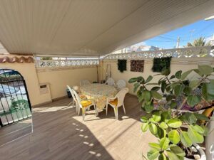Wonderful 2-bedroom townhouse with terrace, swimming pool and garden in Torrevieja In the heart of a quiet, private residential area lies this charming, recently renovated townhouse, which combines modern comfort with the charm of cosy details. Upon entering, you will discover a bright living room dominated by a fireplace that invites you to enjoy warm winter evenings. From here, the home opens onto two terraces, perfect for relaxing outdoors. The separate, fully equipped kitchen offers a functional and practical space for everyday use. The property has two bedrooms, each with air conditioning, ensuring rest and coolness at any time of year. It also has two full bathrooms, designed for the comfort of all members of the family. The charm of this townhouse is enhanced by its two private patios, ideal for sharing unique moments around a barbecue. The residential complex in which it is located could not be more complete: a large communal swimming pool surrounded by landscaped gardens. LOCATION: Torrevieja is in the province of Alicante (Costa Blanca). It is famous for its Mediterranean climate and its coast. We cannot forget its promenades where we can find some restaurants along the fine sandy beaches. It also has many excellent beaches such as Playa de los Náufragos (2 km away), Playa de los Locos (2 km away) and Playa de la Mata (4 km away). Therefore, it is considered a remarkable tourist town where the environment takes an important place as an important tourist attraction. In addition, we can find many shopping centres (Habaneras, La Zenia Boulevard), golf courses, sport centres, hospitals (such as Hospital Universitario de Torrevieja) and airports such as Alicante Airport (35 km away) and Region of Murcia International Airport (43 km away). DISTANCE TO THE SEA: 800m COMUNITY: 350 €. IBI: 198 €. Should you have any question do not hesitate to contact us!
