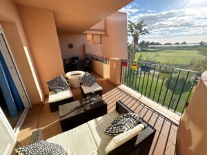 Features: 5 minutes to the Mar Menor beach town of Los AlcazaresBeing sold furnished with aircon throughoutComes with secure allocated underground parking with lift access to the propertyMurcia airport 20 minutes drive and Alicante 1 hourShort walk to the supermarket and MMGR clubVariety of bars and restaurants on the nearby boulevardWest facing two bedroom two bathroom apartment