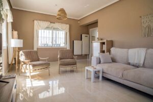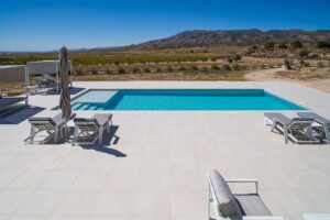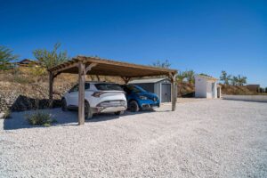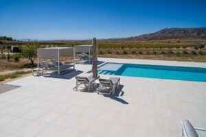 Charming Modern Villa on an Idyllic 8,283 m² Plot – Your Slice of Spanish Paradise!Just a breezy 5 kilometers from the lively, buzzing town of Pinoso, this fabulous villa is the perfect blend of peace, comfort, and a touch of adventure. Imagine waking up to the scent of blooming almond and fruit trees, with the breathtaking views of rolling hills and the Sierra del Carche just outside your window. This is countryside living with all the perks of modern luxury—your personal haven in the heart of Spain!Spacious, Light-Filled Living with StyleSpread out over 129 m² of bright, airy space, this home feels like a hug from the Spanish sun. The tastefully furnished living room features a cozy wood-burning stove—perfect for cool evenings—and is flooded with natural light, making every day feel warm and inviting. The kitchen? A chef’s dream with ovens, refrigerator, freezer, and counters galore on both sides—ready for your culinary creations! Step behind the scenes to a handy outdoor utility room with washing machine connections—because practicality should never be dull.Sweet Dreams & Stunning ViewsThree comfy bedrooms, including a palatial en-suite, give everyone their own slice of bliss. Climb a staircase to two fabulous roof terraces totaling 30 m²—ideal spots for morning coffees, sunset sips, or just soaking up those panoramic views of the countryside and beyond.Splash, Relax, RepeatDive into your own 5 x 12-meter saltwater pool, built in 2024 and heated for year-round splashes and fun—future expansions? No problem, the setup is already there! Adjacent to the pool, the spacious terrace invites alfresco living and lazy afternoons. Want to elevate your outdoor entertaining game? An approved permit is ready for a luxury outdoor kitchen and lounge—see the plans and start dreaming!Eco-Friendly & Fully EquippedLiving sustainably never looked so good! The villa features 16 solar panels paired with a 5 kW inverter and a 20 kWh battery pack, making energy efficiency a breeze. Whether you prefer electric or gas, both boilers are fresh and ready (installed in 2024). An electric gate welcomes you, while additional goodies include a carport for two vehicles, a tool shed, brick storage, and space for your trusty wood-burning stove. And with four air conditioning units, comfort is guaranteed in all seasons.A Modern, Move-In Ready DreamThis stunning villa is offered unfurnished—though negotiable—so you can add your personal touch. With its unbeatable location, eco-friendly features, and abundant outdoor space, it’s more than just a home; it’s a lifestyle. Ready to embrace tranquility without sacrificing convenience? Your Spanish countryside escape awaits!