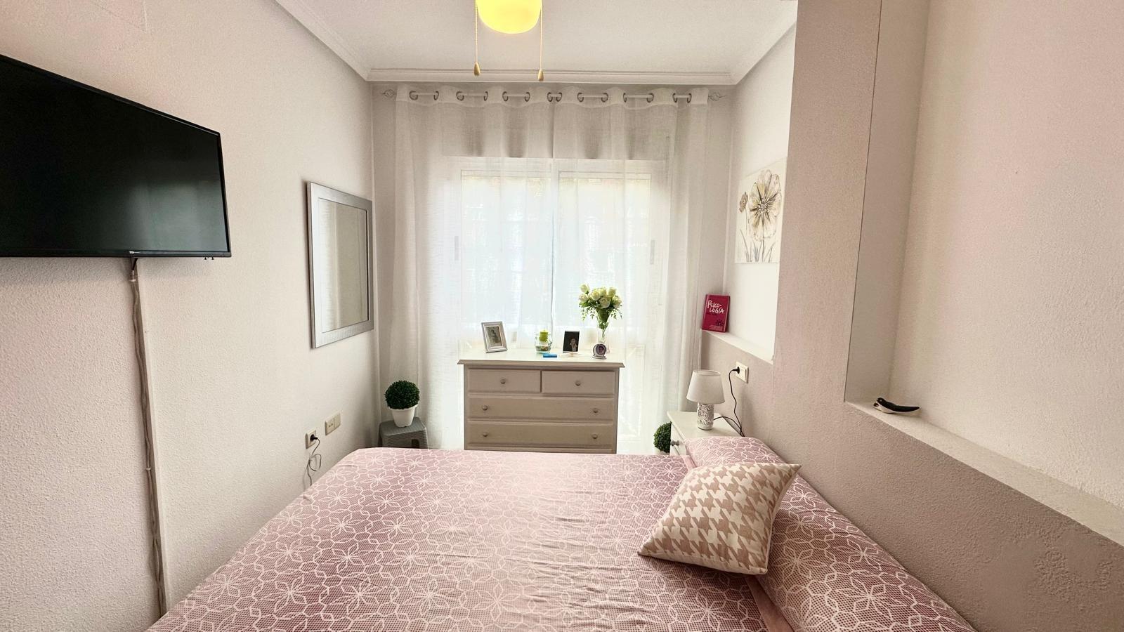 This attractive first-floor apartment is located on Torrevieja's renowned Avenida Habaneras, one of the city's main thoroughfares and just 300 meters from the beach. Its prime location makes it an ideal choice for both a permanent residence and a second home or investment, as it allows guests to enjoy proximity to the sea while also being close to all essential services: supermarkets, restaurants, public transport, and leisure areas. The home boasts a highly functional layout that guarantees comfort and privacy. It features two spacious, well-lit bedrooms and two full bathrooms, one of them en suite, providing added comfort. This feature makes it a practical home for families, couples, or for entertaining guests with complete independence. The south-facing aspect is another of this apartment's great features, as it ensures natural light for virtually the entire day, creating a warm and welcoming atmosphere. The air-conditioned living-dining room is the heart of the home: a comfortable, versatile space designed for enjoyment both in summer and winter. From here, you can access a glazed terrace that offers multiple possibilities, whether as a reading corner, additional dining area, or relaxation area, while also expanding the usable area of the home. The kitchen is separate and equipped with a practical gallery or interior patio used as a laundry and drying area. This detail is especially useful for maintaining order and functionality on a daily basis. The residential complex where the apartment is located offers a communal pool, strategically located on the first floor, which means it can be accessed practically from the front door. This adds comfort and makes this property an ideal place to enjoy sunny days in a safe and family-friendly environment. In short, this is an apartment that meets all the requirements to become a complete home: proximity to the beach, good orientation, excellent common areas, practical layout, and a strategic location in one of the most valued areas of Torrevieja. An opportunity for those seeking quality of life just steps from the sea.