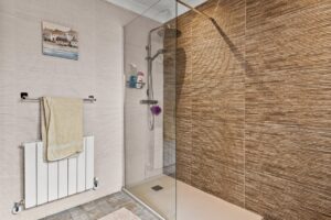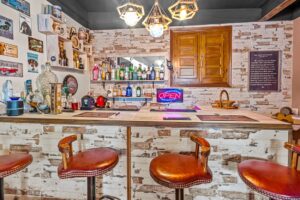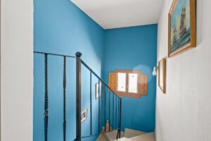 The main living room is the heart of the villa, boasting a traditional wood fireplace that creates a warm, welcoming atmosphere, perfect for relaxing evenings in the cooler months. The fairly new kitchen with an independent island combines functionality and style, offering a central hub for family life and entertaining guests.