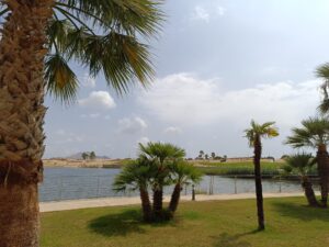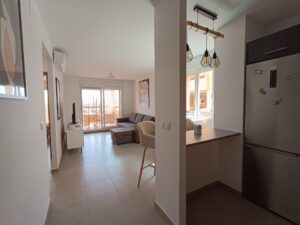 First floor, 2 Bed Corner apartment on ' La Isla ', a man-made Island on the Golf Resort of Las Terrazas De La Torre. This property has amazing views over the lake and the golf course, with 2 infinity pools very nearby. The kitchen is fully fitted with all white goods, and comes furnished throughout. There is also Full AC, recently installed, throughout the apartment. In between the 2 bedrooms there is a nice family bathroom. The terras is spacious and offers stunning views. The Island is surrounded by a Lake and a Golf Course, only a few minutes walk to the Resorts Clubhouse, Restaurant and Supermarket. There are 16 communual pools More businesses will be opening in the commercial center, which makes it the perfect time to buy on this resort. This complex has a single entrance and its facilities are fully fenced, with 24 hour security for the safety of its residents. If you are a golf fan you will be able to play on a 18 hole golf course created by Jack Nicklaus, whose semi-desert design blends in with the natural landscape, thus demonstrating a high degree of efficiency of natural resources. Offering fantastic value for money, phenomenal security and a superb location, Las Terrazas de la Torre is a wonderful resort that offers buyers the opportunity to find a beautiful home at an excellent price. It is just a short drive, 15 minutes, from the Mar Menor and Mediterranean coastlines, plus Murcia international airport and 20 minutes to Cartagena and Murcia.