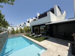 Family Villa in San Javier Murcia!. Enjoy the tradition, modernity, and innovation, present and future, all under the same roof. We are finding harmony between the environment and the quality of your home. Enjoy this family home in a traditional Spanish town, with all amenities within walking distance. Imagine, the Mediterranean Sea with sandy beaches is just 600 meters from your home! Your gorgeous Spanish family villa, designed to provide you and your family with elegance, practicality and comfort. Enjoy the spacious terraces offer the perfect setting for relaxing and taking in the fresh air. Appreciate the beauty of nature and admire the breathtaking scenery surrounding the property. The private pool invites you to relax and refresh on hot days. The area around the villa offers countless entertainment and leisure options. You can take advantage of the nearby golf clubs, participate in sporting activities, attend international schools, explore shopping centres and pamper yourself with spa treatments. In addition, two International Airports are close to your home.Take this opportunity now to enjoy living in this incredible place! Contact us for more information, and enjoy Spain as your new home!Additional Features1. Underfloor heating throughout the entire house2. Central air conditioning system, individually controlled in each room, controlled by app3. External security cameras with WiFi access4. Alarm system installed by ADT, with direct connection to the police5. Mosquito screens on all windows in bedrooms, living room, and bathrooms, including two large automatic ones in the living room and an additional pleated screen in the bioclimatic pergola6. Bioclimatic pergola with adjustable roof, RGB LED lighting, and colour-changing system7. Water softening system8. Large automatic awning in the living room9. Manual awning in the bioclimatic pergola10. High-end household appliances: Siemens oven andmicrowave, AEG dishwasher, Bosch fridge and freezer, Bosch extractor hood and induction hob11. Stone kitchen countertop with a wood-effect finish12. Samsung washer and dryer13. The house features four bedrooms and a living room14. Furniture includes a leather corner sofa with chaise longue and extendable porcelain dining table with wooden legs, four leather chairs, wooden TV cabinet and 85” Samsung 4K High End TV plus two open wooden bookshelves from the Spanish brand Cerda15. A fully equipped outdoor kitchen in the solarium, including a sink, fridge, and induction hob. Enjoy the solarium and terraces, which are fully furnished with Dutch furniture, featuring a table, six chairs, and two corner sofas.16. Solar panels with two power walls17. High-end boiler, also remotely controlled via WiFi18. Enclosed storage area in the garden for tools and maintenance equipment19. Remote-controlled electric blinds via Smart Home system app20. Built-in wardrobes in all rooms21. Robotic pool cleaner22. Automatic irrigation system for garden plants and many more